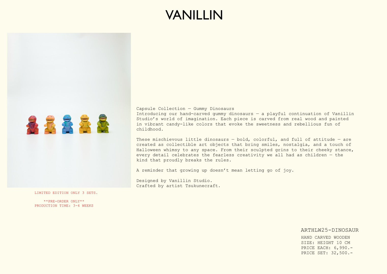 Introducing our hand-carved gummy dinosaurs - a playful continuation of Vanillin